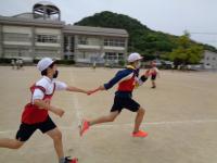 2021年5月11日 12時25分6年生は、体育でリレーの学習を行っています。
